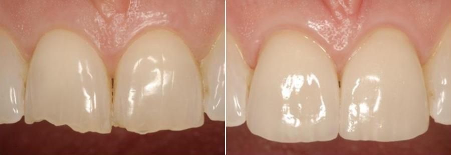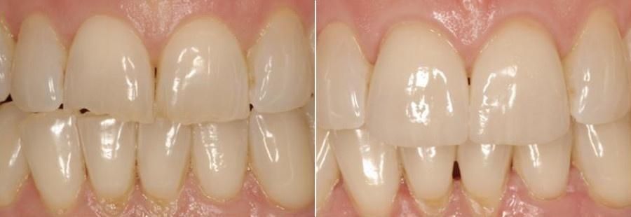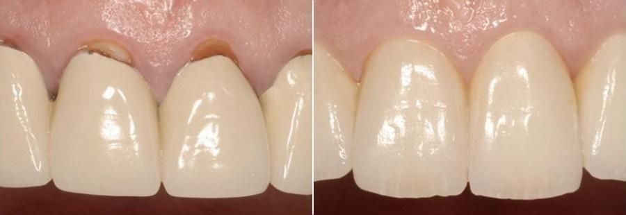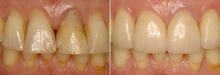 Infolge eines Unfalls abgebrochene mittlere Schneidezähne.