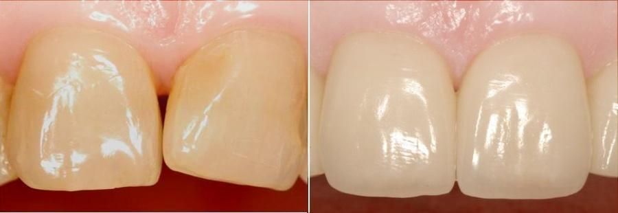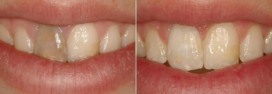 Nach der Revision der Wurzelfüllung erhielt der Zahn durch Bleichen seine ursprüngliche Farbe zurück. Eine Überkronung wurde so vermieden.